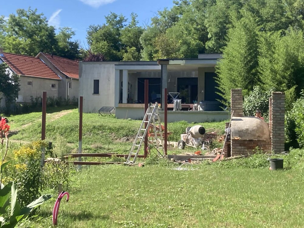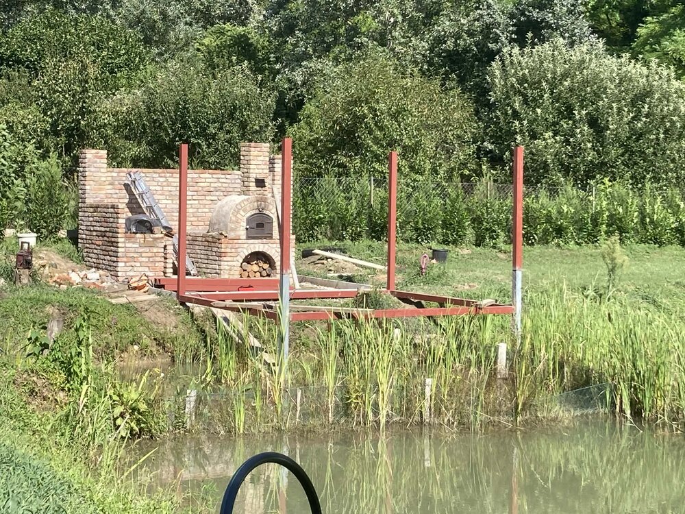 A teraszhoz kapcsolódóan egy tégla falazatú kemence is elhelyezésre került, önálló alappal, alsó fatároló résszel és felső sütőtérrel.