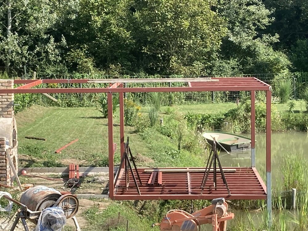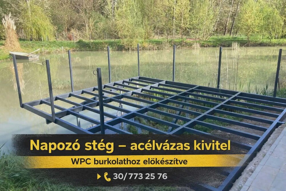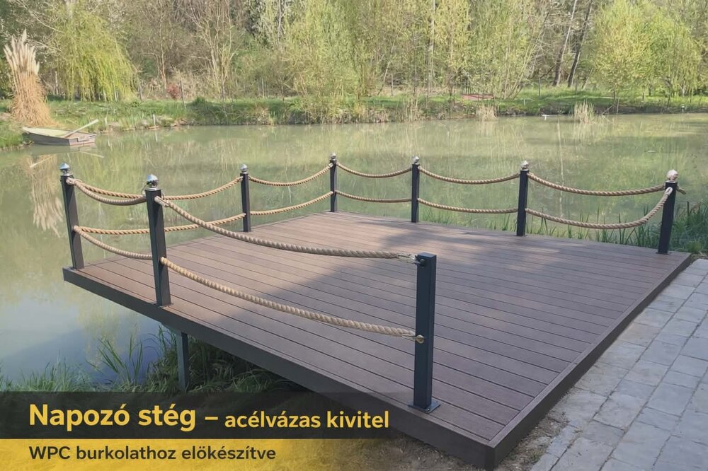 Acélszerkezetes, vízparti terasz egyedi kivitelezésben